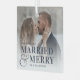 Affichez une photo de mariage préférée avec ce design de Noël audacieux et moderne, avec "marié & joyeux" recouvert de lettres bleu marine, accompagné d'une énorme esperluette. Personnalisez avec votre date et vos noms mariages.