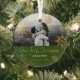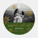 Un ornement de Noël lumineux avec des flocons d'or et un arrière - plan vert brillant pour couple engagé. Personnalisez-le en ajoutant vos noms et l'image. C'est un bon cadeau pour les jeunes mariés ou pour un fiancé/financier.