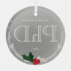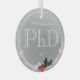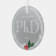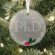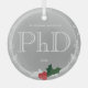 Un ornement de Noël en verre pour un doctorat avec un schéma de couleur gris et (non-feuille) argenté, et une décoration de baies et de feuilles saintes. Il montre le diplôme, le nom et l'année. Il suffit de customiser cet ornement, de l'ajouter à votre panier, et d'avoir une conservation de cette grande réalisation Holly Berry Silver Grey PhD Graduation Nom Ornement Verre Conception Jour férié | ©Melissa Patton - Designer