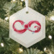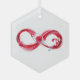 Infinity symbole of continuous stream of red pouring into glass glass glass on white background.
