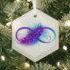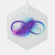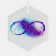 Infinity symbole with a beautiful feather painted in purple and blue bright colors on white background
