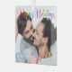 Elégant Happy Holidays photo ornement de Noël avec une belle typographie arc-en-ciel cursive. Ce cadeau de vacances LGBTQ moderne présente un script magnifique et votre nom en blanc sur la photo de fond d'un couple LGBT.
