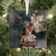 Un magnifique ornement d'arbre de Noël pour marquer votre premier Noël marié avec votre photo de mariage préférée superposée avec "joyeuse & mariée" en serif blanc et police de script. Personnalisez davantage avec votre nouveau nom marié et année de mariage en serif font.