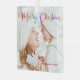 Magnifique arc-en-ciel Joyeux ornement photo de Noël avec belle typographie arc-en-ciel cursive. Ce cadeau de famille de vacances moderne présente une superbe présentation de script coloré et votre nom en rouge sur l'image de fond.