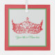 Cet ornement représenté avec une couronne américaine emblématique imprimée sur un ornement en verre carré. Personnalisez le texte à votre propre titre, nom ou phrase. Montré en blanc arrière - plan, couleur rouge bordure extérieure, couleur verte bordure intérieure et couleur rouge image de couronne. Vous pouvez personnaliser cet article en changeant la couleur de la couronne, du texte et de l'arrière - plan si vous le désirez. Customisez cet objet avec ce modèle ou achetez comme indiqué. Image sous licence