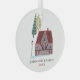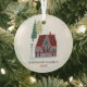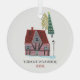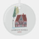 Ornement de Noël charmant avec une maison de vacances illustrée et confortable et une scène de village d'hiver. Parfait pour les ornements de famille personnalisés, les souvenirs de vacances et les décorations d'arbre de Noël. Œuvre originale de Caroline Bonne Müller