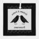 Ce magnifique ornement de Noël en verre pour jeunes mariés présente une image art numérique d'une paire de beaux corbeaux noirs se faisant face et ressemblant à des baisers. Elles sont noires avec les yeux béatifiés et les pieds et les becs gris. Il y a aussi des étoiles blanches sur un arrière - plan noir au-dessus et au-dessous des oiseaux. Il y a du texte personnalisé pour que vous puissiez inclure les noms du couple heureux et un message.