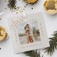 Un ornement en verre photo minimaliste et moderne pour commémorer votre premier mariage de Noël. Le design est simple et minimaliste avec un design photo carré pour afficher votre photo mariage spéciale. "Marié & Joyeux", nom de l'année et du couple affiché dans un design moderne simple autour de la photo.