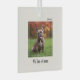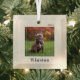 Modern Ivory Custom Name Photo glass ornament with your pet’s name in a gray, bold serif font. Your pet's photo is framed with a thin white line on an elegant ivory background.