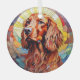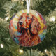 Voici un joli ornement en verre sur le thème du vitrail, avec un beau chien rouge de Setter irlandais. Le chien est dressé contre un arrière - plan en mosaïque multicolore. Les couleurs sont le bleu, l'or, le rouge marron, la crème et plus encore. Cela fait un bon pochette ou une décoration pour la maison qui aime un Setter irlandais.