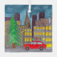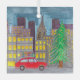 Noël en ville. Aquarelle peinte à la main. La voiture est séparée de l'arrière - plan afin que sa position puisse être changée.