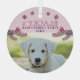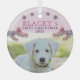 Mignons premier ornement photo de chiot de Noël avec branches d'arbres de Noël et flocons de neige sur arrière - plan rose. Personnalisez l'ornement avec la photo, le nom et l'année de naissance de votre chien - insérez votre photo de chiot préférée. Vous pouvez utiliser cet ornement personnalisé pour n'importe quel animal de compagnie. Un doux saké de vacances pour vous ou un cadeau pour votre famille et vos amis.