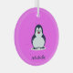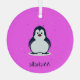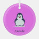 Ornement En Verre Nom personnalisé pingouin mignon sur rose