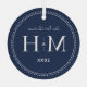 Ornement En Verre Nos premiers mariés de Noël Monogram Navy Blue