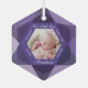 Fêtez l’arrivée de votre petit avec l’ornement en verre Our Little Gem Février Birthstone Baby Stats Birth Stats. Ce magnifique ornement en verre hexagonal s'inspire de l'améthyste, la magnifique pierre de naissance violette de février. Montrez une photo chère de votre bébé au centre, encadrée en forme d’hexagone, et personnalisez avec le nom de votre bébé, la date de naissance, le poids, la longueur et l’heure de naissance. L’élégant texte "Our Little Gem" ajoute une touche de coeur, faisant de cet ornement un souvenir intemporel pour honorer la première saison de vacances de votre nouveau-né. Parfait comme cadeau pour de nouveaux parents, grands-parents, ou comme un ajout précieux à votre arbre de vacances, cet ornement allie personnalisation significative et élégance durable. Conception originale et concept par ©Moodthology Papery