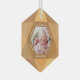 Fêtez l’arrivée de votre petit avec l’ornement en verre Our Little Gem November Birthstone Baby Stats Birth Stats. Cet élégant ornement en verre hexagonal s'inspire de topaz, la chaude pierre d'origine dorée de novembre, symbolisant la joie, l'abondance et la bonne fortune. Affichez une photo chère de votre bébé au centre, joliment encadrée dans la forme hexagonale, et personnalisez-la avec le nom de votre bébé, la date de naissance, le poids, la longueur et l’heure de naissance. Le texte tendre "Our Little Gem" ajoute une touche de coeur, créant un souvenir intemporel pour célébrer la première saison de vacances de votre nouveau-né. Cet ornement allie élégance durable et détail personnalisé, un cadeau de qualité pour de nouveaux parents, grands-parents ou comme un ajout significatif à votre arbre de vacances. Conception originale et concept par ©Moodthology Papery