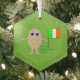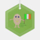 Cet ornement présente un dessin amusant d'un oeuf aux bras et aux jambes. L'oeuf a les bras et les jambes et une petite fissure dans la tête exposant le blanc à l'intérieur. Il a les yeux bleus avec une pupille noire et un grand sourire où le jaune de l'oeuf peut être vu. La coquille d'oeuf a l'air rugueuse. Cet oeuf patriotique irlandais tient fièrement son drapeau et il y a un texte vert sous le drapeau qui dit "tout est à propos de l'engouement". Ce design amusant est idéal pour la Saint Patricks Day ou pour les hommes et femmes irlandais fiers.