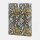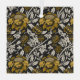 Ornate floral pattern with large gold flowers and cream leaves on a black background. The design is intricate, vintage-inspired, and elegant.