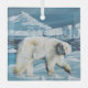Un ours blanc polaire dans la neige de l'hiver arctique avec un iceberg derrière eux.