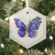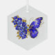 Bijoux, bleu, saphir, papillon aux fleurs pétillantes avec aile décorée de bleu, fleurs précieuses avec feuilles d'or sur arrière - plan blanc.