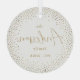Les ornements personnalisés de la famille de Noël sont dotés d'un élégant script de nom de famille tendance et de parties scintillant en couleur or, photo de famille optionnelle sur le dos, moderne et simple.
