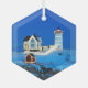 Ornement en verre du phare de Nubble. Nubble Lighthouse avec une glace de neige et des lumières de vacances.