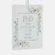 Doté de délicats feuilles de verdure aquarelle, cet ornement chic pour gardiens de diplômes Phd peut être personnalisé avec votre nom de grade, sujet et date de graduation. Conçu par Thisisnotme©