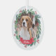 Décorez votre arbre ou offrez un cadeau spécial cette saison de vacances avec cette élégante photo d'animal de compagnie dans un ornement design de couronne de noël, et décoration assortie. Cet ornement de Noël de chien présente une couronne verte et rouge d'aquarelle avec des saints et des baies. Personnalisez avec le nom. Cet ornement de Noël de l'animal de compagnie sera un favori parmi les amoureux, les amoureux de les chiens et les amoureux des animaux. Visitez notre collection pour les cartes de Noël pour animaux de compagnie assorties, la décoration de maison et les cadeaux. DROIT D'AUTEUR © 2020 Judy Burrows, Black Dog Art - Tous droits réservés. Photo d'aquarelle de chien de compagnie personnalisée Wreath Ornement en verre de Noël