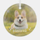 Nous vous présentons notre ornement photo de compagnie moderne et simple, l'ajout parfait à votre décoration de vacances ou votre hommage commémoratif. Pour l'amoureux des chiens et des animaux dans votre vie, cet ornement présente une belle image d'un chien ou de votre animal de compagnie préféré, personnalisable avec la photo et le nom de votre animal.