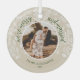 Ornement de Noël rond en verre présentant votre photo préférée entourée de feuilles blanches, de baies et de points sur un fond ivoire. Les mots "nous sommes joyeux et mariés" en haut, vos noms et année en bas. CONSELIL : Téléchargez une photo haute résolution qui vous met en vedette au milieu ou recadrez-la en carré avant de la télécharger. Les ornements font des cadeaux mémorables pour la famille et les amis ou créez pour vous-même. PLUS de couleurs dans notre magasin.