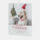 Whimsical Joyeux voeux de Noël en rouge personnalisation typographie sur étiquette blanc avec bordure rouge, modèle photo et champs de texte personnalisables.