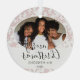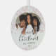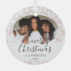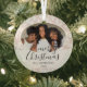 Rococo Rose Joyeux Script de Noël Photo Ornement en verre. Motif rococo rose et blanc avec photo personnalisée. Ajoutez votre photo et votre texte et faites un ornement de Noël tendance et chic.