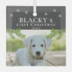 Coupable premier cadeau de Noël Chien Chien Photo Pine Verre Ornement. L'arrière - plan est gris foncé avec des flocons blancs, des branches de pin vert et le texte est dans la typographie blanche tendance. Personnalisez l'ornement avec la photo, le nom et l'année de naissance de votre chien - insérez votre photo de chiot préférée. Vous pouvez utiliser cet ornement personnalisé pour n'importe quel animal de compagnie. Un grand souvenir de vacances pour vous ou un cadeau pour votre famille et vos amis.