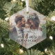 Célébrez un 1er jour férié joyeux en couple marié avec une photo personnalisée "Notre premier Noël en tant que Monsieur. & Mme" ornement en forme d'hexagone. Image et toute la formulation de ce modèle sont simples à personnaliser. (CONSEIL EN MATIÈRE DE PLACEMENT D'IMAGE : Une façon simple de centrer une photo exactement comment vous voulez est de la rogner avant de la télécharger sur le site Zazzle.) Le design de superposition en noir et blanc comprend une calligraphie manuscrite, des noms et une année de typographie élégants et une photo de votre choix. Cette tenue mariage unique ajoute une touche moderne aux décorations de la maison de Noël des jeunes mariés.