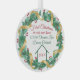 Ce magnifique décor de Noël maison est personnalisé avec votre adresse et votre année en typographie verte et rouge chic dans une couronne de baies vitrée festive avec guirlande d'or enveloppant autour de la verdure. Vacances contemporaines présent et cadeau de ménage. Premier Noël dans notre nouvelle maison.