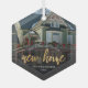 Commémorez votre premier Noël dans votre nouvelle maison avec ce magnifique ornement de gardien moderne. Le texte dit "Premier Noël dans notre nouvelle maison", avec les mots "nouvelle maison" dans l'élégant script de fausse feuille d'or. Remplacez l'exemple d'image par une photo de votre nouvelle maison et ajoutez le nom de famille dans la police blanche sans serif. Un filtre dégradé foncé permet de faire apparaître le texte.
