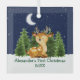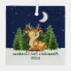 Première aquarelle de Noël du bébé Forêt animale Bois Pins de cerfs Lune, Ciel étoilé et ornement en verre de neige. Inclut le Cerf de Bébé, avec la végétation forestière. Ajouter un nom.