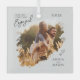 Rustic Our First Christmas Engaged Photo Christmas Glass Ornament. Celebrate your journey to forever with this exquisite 'Our First Christmas Engaged' Christmas keepsake ornament. This unique piece allows you to showcase your favorite engagement photo, framed by an artistic brush stroke accent and framed by your names and engagement date. Slightly opaque glass lets light shine through making it a truly elegant look. It's a touching reminder of the love and excitement of this special time in your lives. Hang it on the tree to relive the joy of your engagement every holiday season.