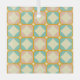 Seamless retro pattern with rounded squares in peach, teal, and cream hues, outlined in orange. Mid-century modern style, conveying a vintage, playful tone.