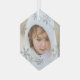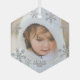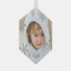 This personalized photo ornament with a scatter of elegant faux silver glitter snowflakes and your optional custom text in dark gray is a cute way to display treasured memories. These custom glass Christmas ornaments in a hexagon shape allow light to shine through so the minimalist 7 silver snowflake design and your picture will peek through on the back as they hang on your Christmas tree. Easy to personalize, just add your photo via the provided template and then add your text in dark gray or delete and clear to remove the placeholder text if you prefer your ornaments without wording. So add your photo behind the elegant faux silver glitter snowflake design and create your own customized Christmas ornaments, maybe one for everyone in the family for a matching set. Fun for kids, adults, family and friends, these personalized ornaments featuring your photo and silver snowflakes make great keepsakes that you will treasure for years to come.