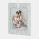 Bébé natation stats ornement photo avec délicats flocons de neige blancs sur un arrière - plan vert doux. Le modèle photo est prêt pour vous à ajouter votre photo bébé, encadrée avec vos statistiques de naissance. Si vous rencontrez des problèmes de placement, essayez de recadrer votre photo sur un carré et de recharger