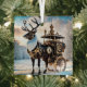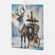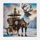 Ce design amusant a un renne steampunk tirant un chariot métallique à roues.