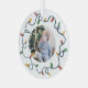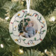 Des lampes de Noël colorées et modernes entourent la photo de votre bébé sur le devant et vous pouvez personnaliser avec le nom et l'année de leur premier Noël à l'envers.
