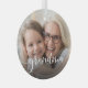 Créez un cadeau sucré pour une grand-mère spéciale avec ce magnifique ornement personnalisé. "Grand-mère" apparaît comme un élégant script blanc superposé sur votre photo préférée de grand-mère et de son petit-enfant ou petits-enfants.