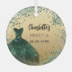 Pour un élégant Sweet 16, 16e anniversaire. Un arrière - plan à l'allure d'or. Décoré d'une robe vert émeraude et de confettis verts. Personnalisez et ajoutez un nom et une date.