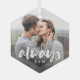 Créez un doux souvenir de votre mariage, fiançailles, anniversaire, lune de miel ou un moment spécial avec cet ornement personnalisé qui est parfait pour les couples. "Always" est superposé sur une photo préférée en lettres manuscrites décontractées, avec vos initiales en dessous.