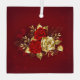 La composition de deux roses rouges artistiquement peintes et d'un rose doré, décoré d'or, feuilles de bijoux sur arrière - plan texturé.