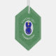 Décor de Noël ornement en forme d'hexagone avec un ange habillé du drapeau bleu et or de l'Union Européenne. L'ange de l'UE vole au centre d'un cercle blanc de carrés grossiers. Un arrière - plan de carrés verdoyants vient compléter le thème de Noël. Ajoutez votre propre texte ou personnalisez avec un nom. Customisez avec l'année.