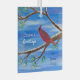 This is a snowy, winter scene of a cardinal sitting on a branch of a sparse pine tree--a pop of red against a blue sky. This image was originally painted on canvas with acrylic paints and hangs in the artist's home each winter.
