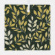 Seamless pattern of stylized yellow and cream leafy branches against a dark green, speckled background.